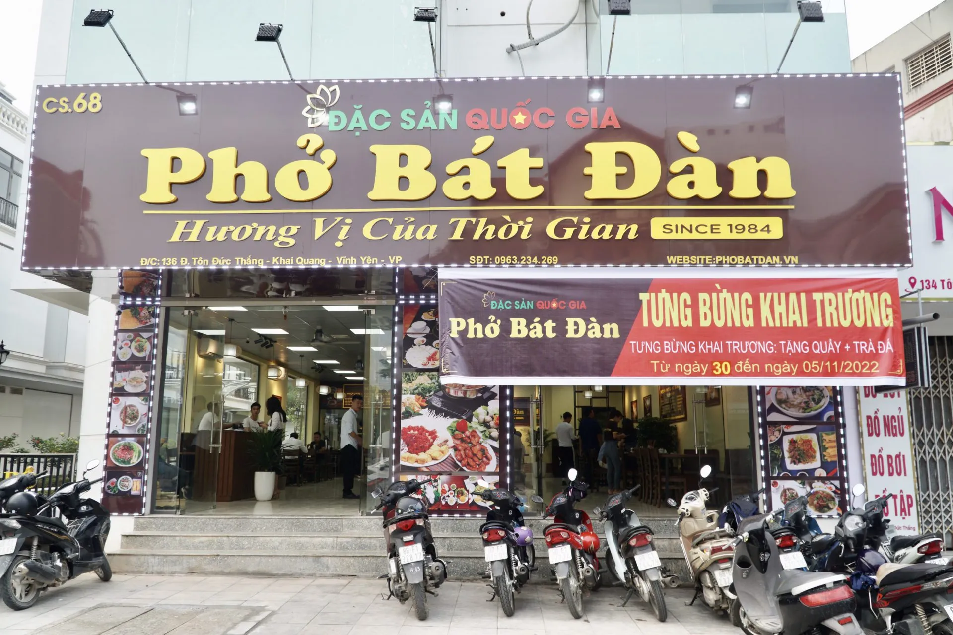 Phở Bát Đàn Đây không chỉ là một quán ăn, mà là một trải nghiệm về “văn hóa phở gốc” của Hà Nội. Nét đặc trưng nhất ở đây là văn hóa xếp hàng và tự phục vụ. Bạn sẽ được hòa mình vào dòng người, kiên nhẫn chờ đợi để tự tay bưng về một tô phở nóng hổi. Nước dùng ở đây trong veo, ngọt thanh vị xương hầm chứ không phải vị mì chính. Thịt bò tươi được thái mỏng, chần tái vừa tới, giữ được độ mềm và ngọt tự nhiên. Đây là hương vị phở Hà Nội xưa đích thực.