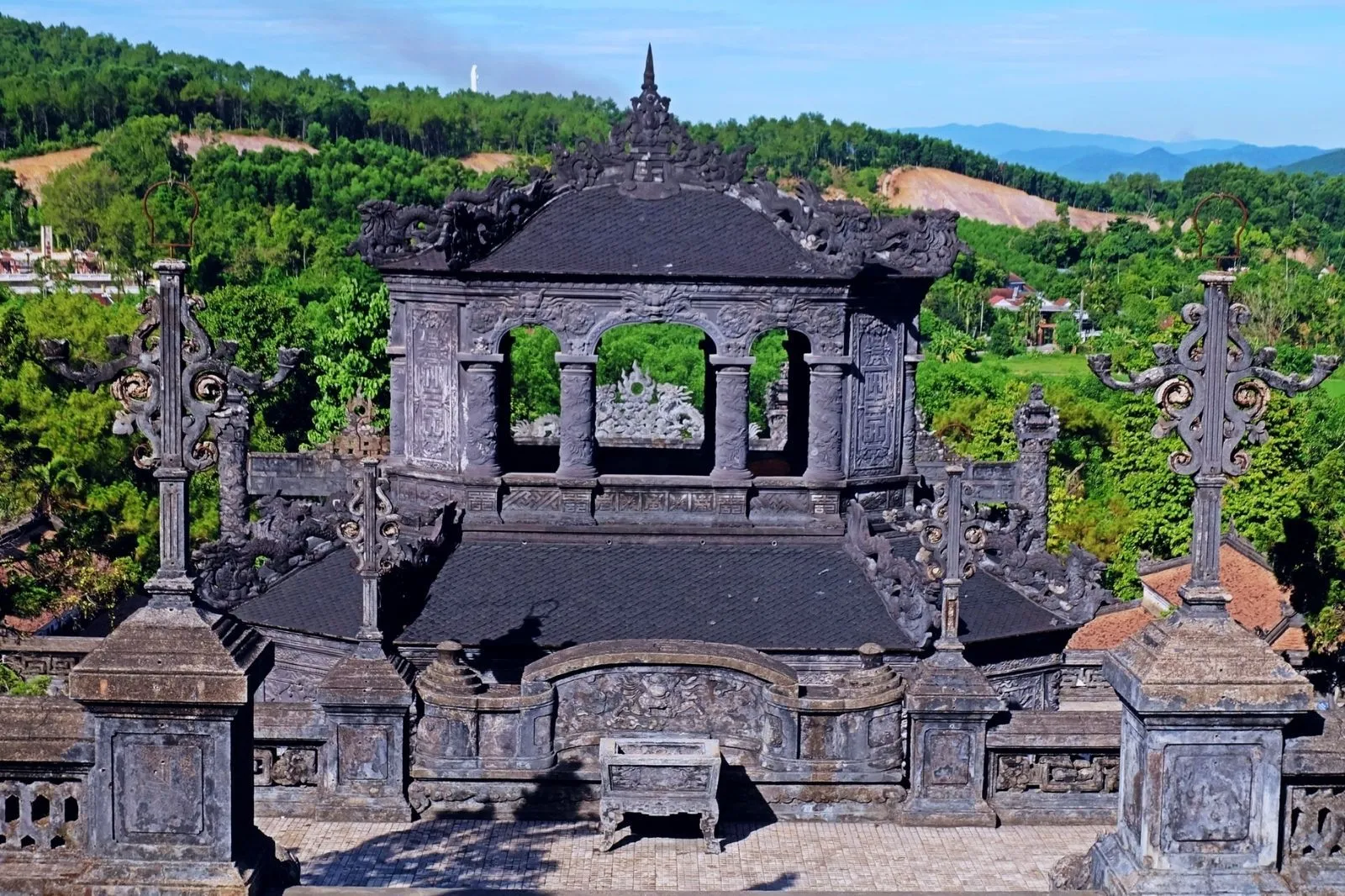 Lăng được xây trên sườn núi, pha trộn giữa phong cách Á – Âu, với khảm sành sứ tinh xảo và họa tiết huyền ảo. Mỗi bức phù điêu, mỗi ô cửa đều là một tác phẩm nghệ thuật.