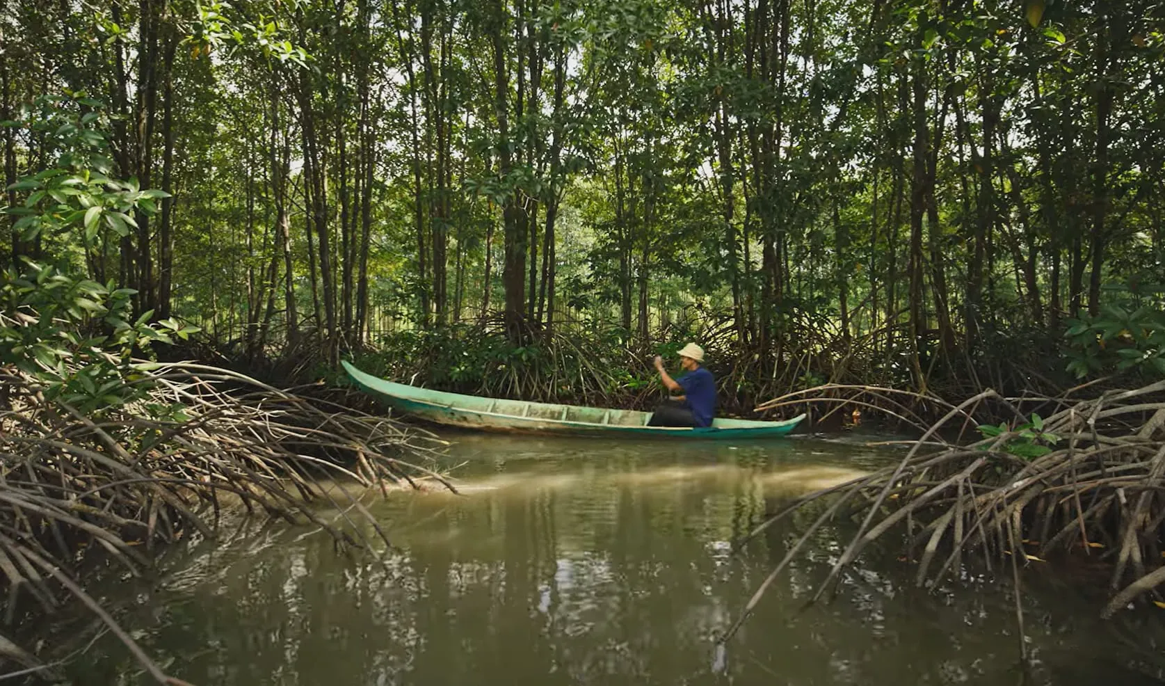 Từ Cần Thơ, đi xe khách 4–5 tiếng là tới Mũi Cà Mau, nơi con sông Hậu đổ ra biển lớn. Đứng ở cột mốc tọa độ Quốc gia, phóng tầm mắt nhìn biển trời bao la, bạn sẽ thấy sự bình yên khó tả. Nếu lưu trú tại Khách sạn Mường Thanh Cà Mau, hoặc homestay ngay trong rừng đước, bạn có thể nghe tiếng tôm cá đêm đêm, hòa trọn vào nhịp sống sông nước. Món ngon ghé Cà Mau là không bỏ qua được nè: cua Cà Mau, cá thòi lòi, ba khía muối, rượu trái giác. Những thức mộc mạc mà ngon đến nao lòng.