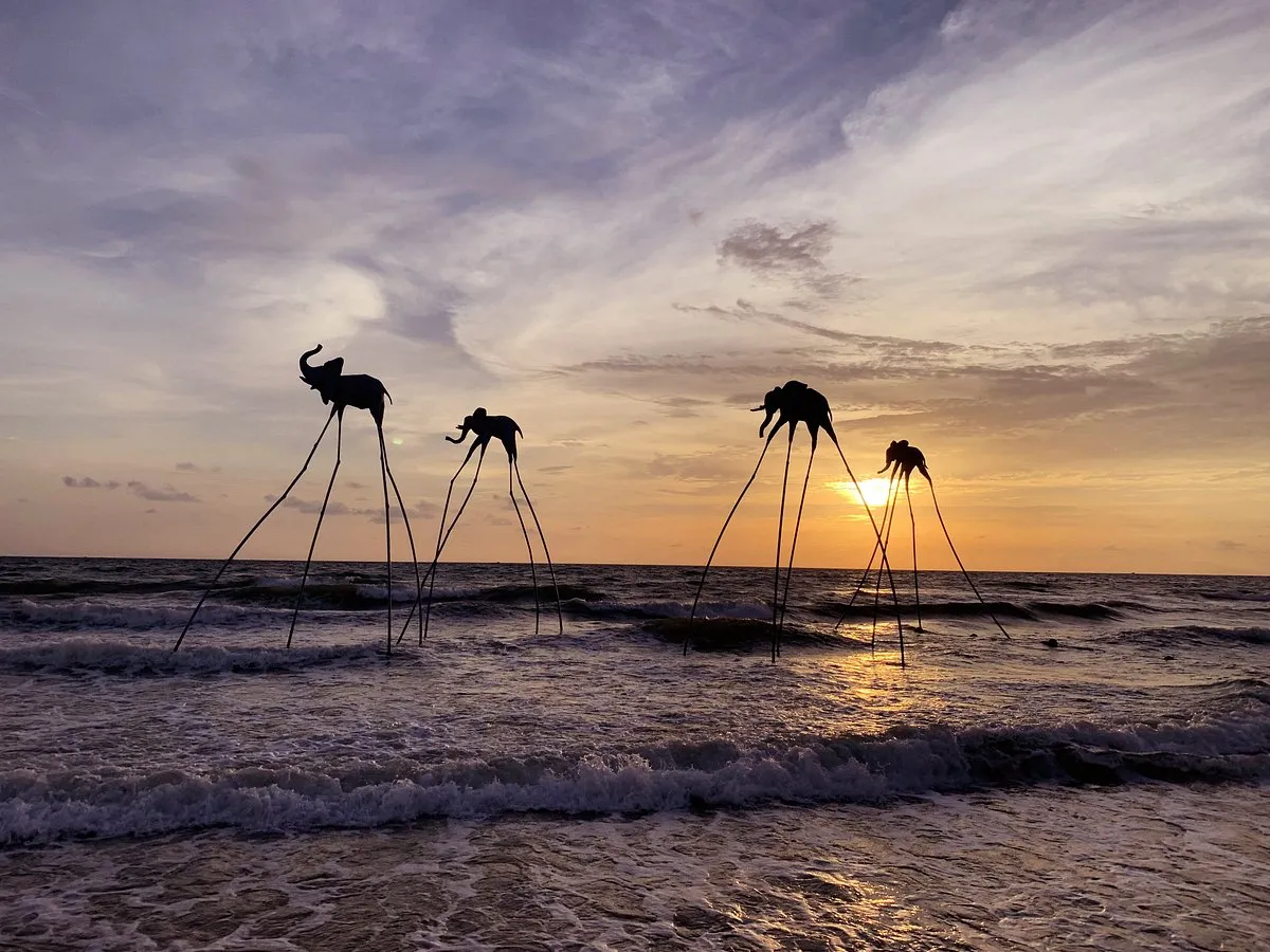 Cảnh mặt trời lặn sau những tượng nghệ thuật trên biển là hình ảnh “đặc sản” của Phú Quốc. Nhiều người chọn đến đây không chỉ để chụp hình mà còn để “nạp năng lượng” bằng sự tĩnh lặng và thi vị hiếm có.