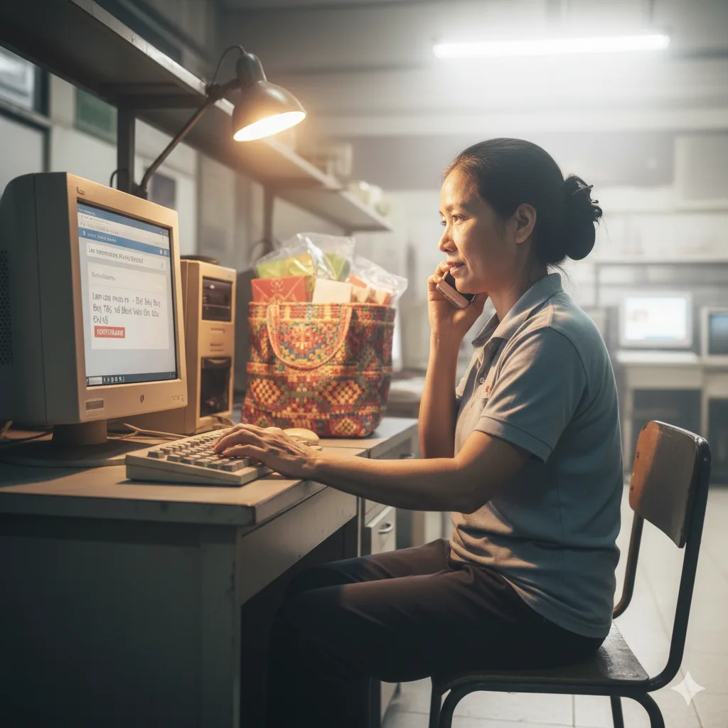 Giọng nói của cô tư vấn viên bên kia đầu dây thật nhẹ nhàng, kiên nhẫn. Cô ấy lắng nghe câu chuyện của Hạnh, nghe về ba năm xa con, về những gánh quà và nỗi lo thủ tục mà chẳng hề thúc giục.